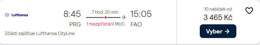 DALŠÍ TIPY: EXISTUJÍ PŘÍMÉ LETY Z PRAHY DO LISABONU SE SPOLEČNOSTÍ EASY JET. V LISABONU SI PAK MŮŽETE PRONAJMOUT AUTO A NEBO JET AUTOBUSEM DO FARA. CENY JÍZDENEK JSOU VELMI NÍZKÉ, POKUD KOUPÍTE ZAVČAS, STOJÍ TO NAPŘ. 5€/OS. CESTA AUTOBUSEM Z LISABONU DO FARA TRVÁ 3h.