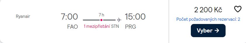 15.10. Faro – London Stansted – Praha (pozor, UK, je potřeba pas!)
